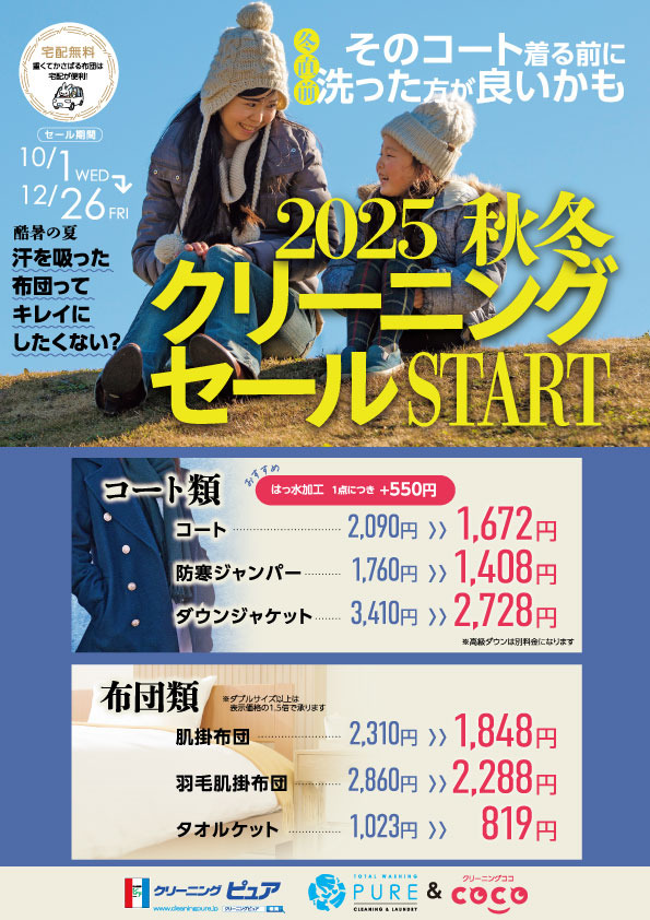 ※当社規定ブランドのダウン類は別途料金を頂戴します。